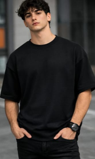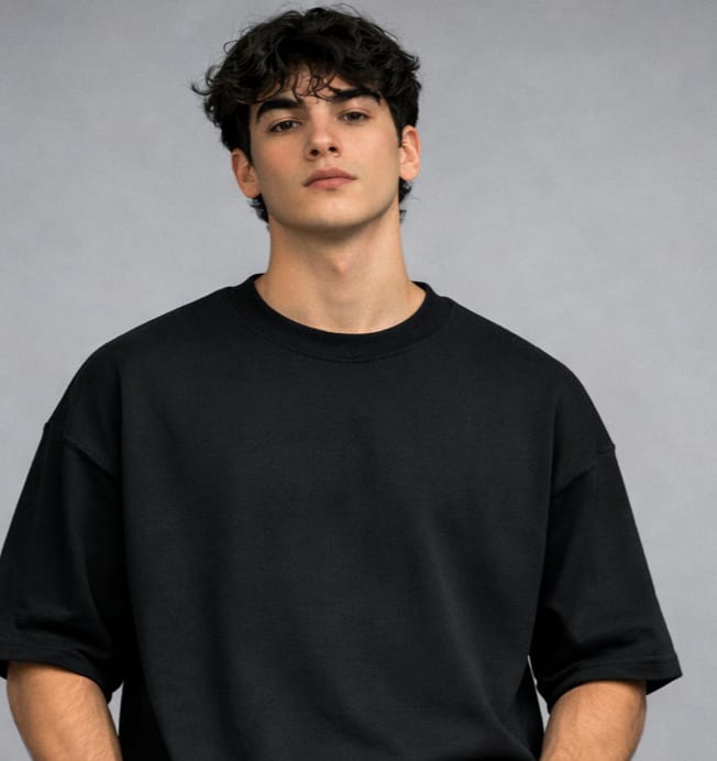 A premium black oversized t-shirt designed for comfort, streetwear style, and everyday versatility.